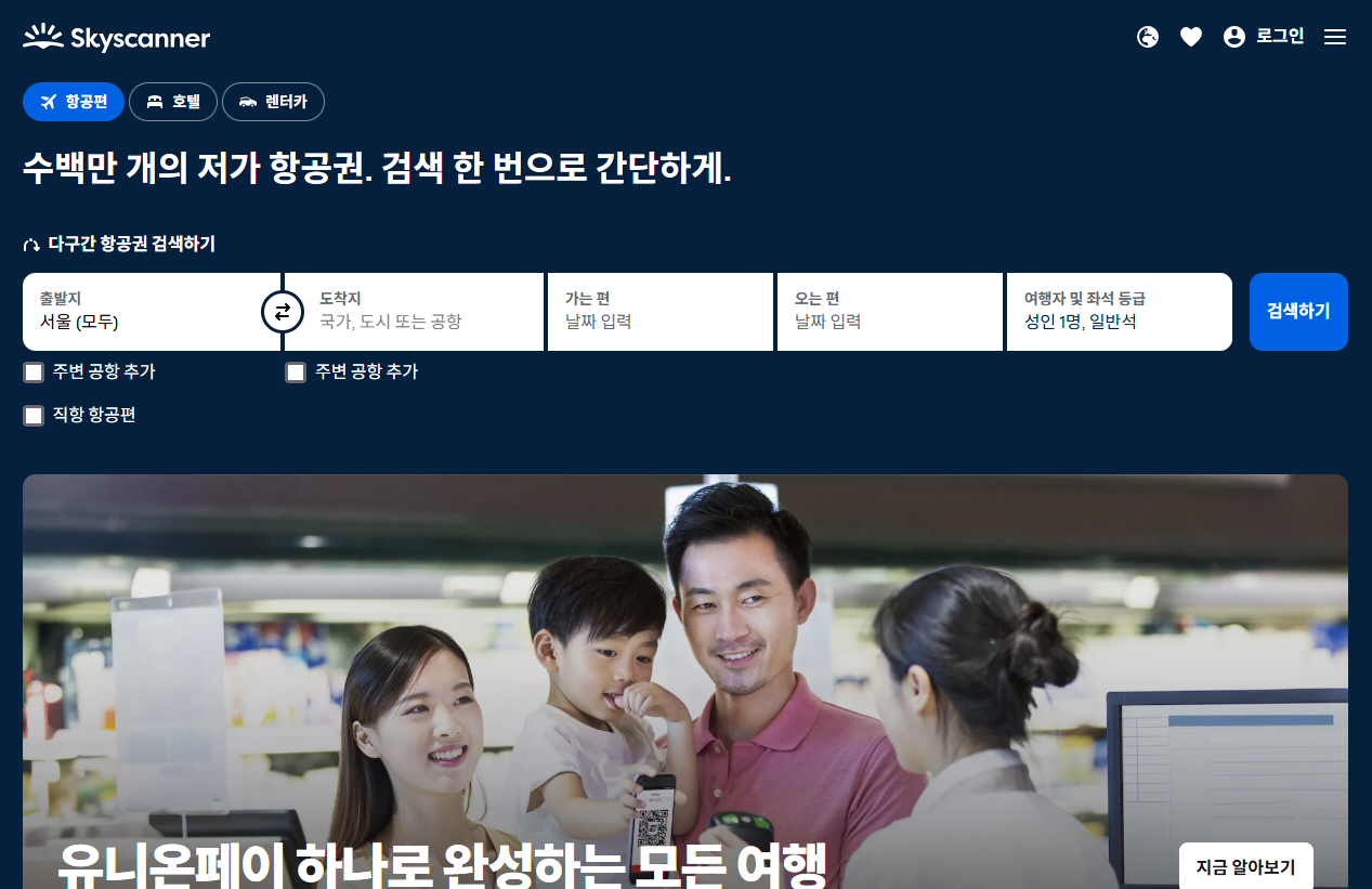 전 세계 항공사 및 여행사 가격을 실시간 비교