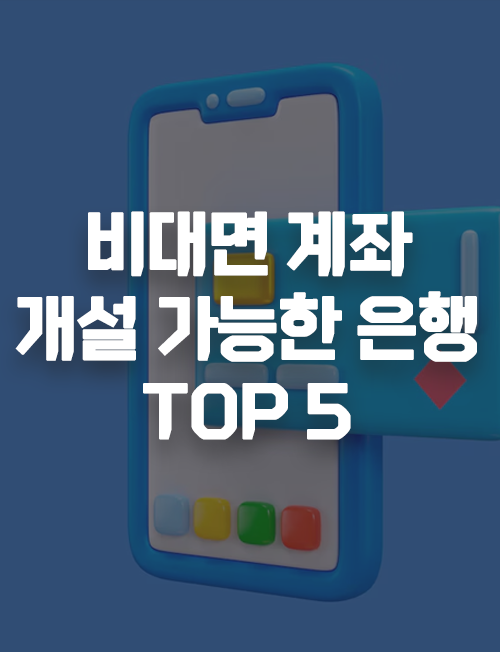 🏦 비대면 계좌 개설 가능한 은행 TOP 5 (신분증만 있으면 OK)"은행 안 가도 통장 개설 가능할까?"2025년 기준, 비대면으로 계좌 개설이 가능한 은행 TOP 5를 비교 정리했습니다.지갑 없이 폰 하나면 OK! 지금 바로 알아보세요.✅ 목차1. 비대면 계좌 개설이란?2. 준비물 및 인증 조건3. 은행별 특징 비교4. 유의사항과 꿀팁1. 비대면 계좌 개설이란?비대면 계좌 개설은은행 영업점을 직접 방문하지 않고, 스마트폰이나 PC로 신분증 인증만으로 통장 개설이 가능한 방식입니다.2. 준비물 및 인증 조건📸 주민등록증 또는 운전면허증 (실물)📱 스마트폰 (카메라 기능 필수)🧾 본인 명의 휴대폰 + 통신사 인증3. 은행별 TOP 5 추천은행앱 이름특징카카오뱅크카카오뱅크가장 쉬운 개설, 계좌번호 ..